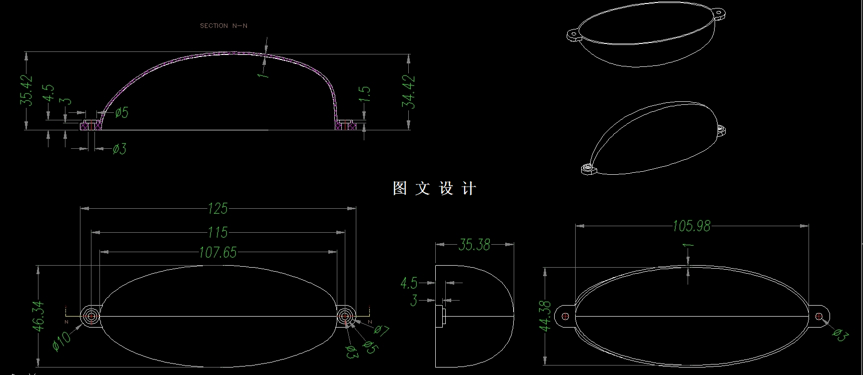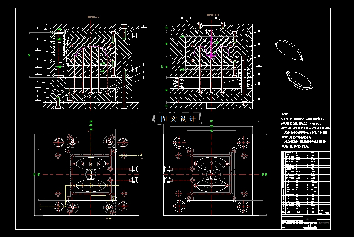 此设计为玩具飞船机舱盖注塑模具设计,采用一模二腔,侧浇注口进行填充,提供三维(UG格式)+二维装配图1张及主要零件图11张+工艺卡+设计报告文档( 文档约1.4W字 34页)。采用CAD、UG等技术手段设计出该玩具飞船机舱盖模具。通过分析该玩具飞船机舱盖塑件的材料和产品结构以及结构性能特点,确定零件务型腔数量是一模二腔,浇注方式为侧浇口,使用推杆进行顶出,然后学习使用三维UG软件进行塑件的建模,使用CAD绘制出主要的成型零件。