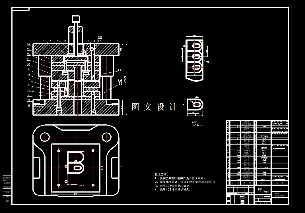 此设计为连接板冲压模具设计,采用的材料为08F,厚度:1.5mm,提供三维(UG格式)+二维装配图1张及主要零件图13张+设计报告文档( 文档约1.1W字 39页)。该冲压模具设计中,选取的设计题目是连接板冲压成型加工工艺分析与模具设计,本次设计的主要内容有对连接板制品的技术参数和产品结构详情进行分析和考量,确定制品的加工方式为级进模具的加工形式,在此基础上对制品性能进行分析,确定加工材料以及加工器械。确定好加工方式后,对模具的排样方式、冲裁力、冲裁零部件等方式进行分析和计算。确定以上相关内容后,采用软件对冲压模具的图纸进行绘制。最后确定该冲压模具的装配流程以及相关的注意事项,确保模具装配过程符合要求。通过上述流程后,完成了本次模具的设计和分析。