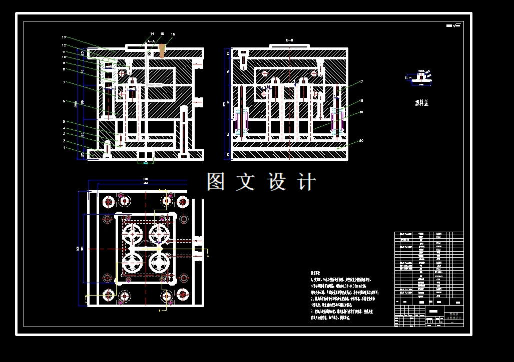 此设计为塑料盖注塑模具设计,提供二维装配图1张及主要零件图3张+设计报告文档( 文档约0.7W字 20页)。考虑到零件的使用情况和安全型。塑料需要有良好的阻燃性和耐热性,因此,采用ABS来生产,此材料是一种半结晶的热塑性塑料。具有较高的耐冲击性,机械性质强韧,抗多种有机溶剂和酸碱腐蚀。在工业界有广泛的应用,是平常常见的高分子材料之一。 1768478