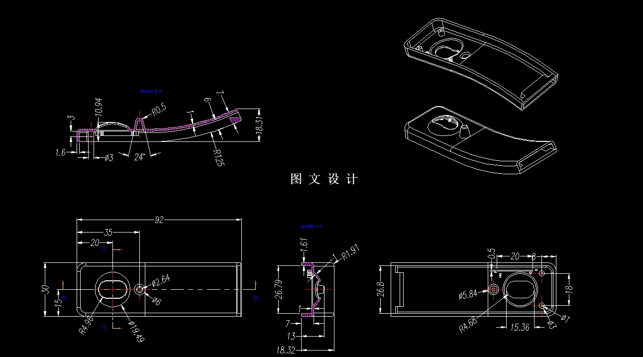 此设计为某型手持扫描仪配件注塑成型工艺与模具设计,采用一模二腔,点浇注口进行填充,提供三维(UG格式)+二维装配图1张及主要零件图12张+模流分析+设计报告文档( 文档约1.4W字 47页)。针对本次所选用某型手持扫描仪配件塑料件的要求,深入了解本某型手持扫描仪配件制件产品实际用处,还需要仔细研究分析塑胶制件产品的全方位的工艺性、控制尺寸制造精密等级及塑胶制件产品的外观控制要点和技术规范。得出整体设计前要对塑胶制件产品的技术控制要求,方可进行核芯成型部位、射胶进入、温控调节、排困气、顶出等系统性设计,还要对注射设备进行采选及设备参数校对,且还须考虑注射模具机构安装和进行试配,使注射模具能顺顺利利进行装配。