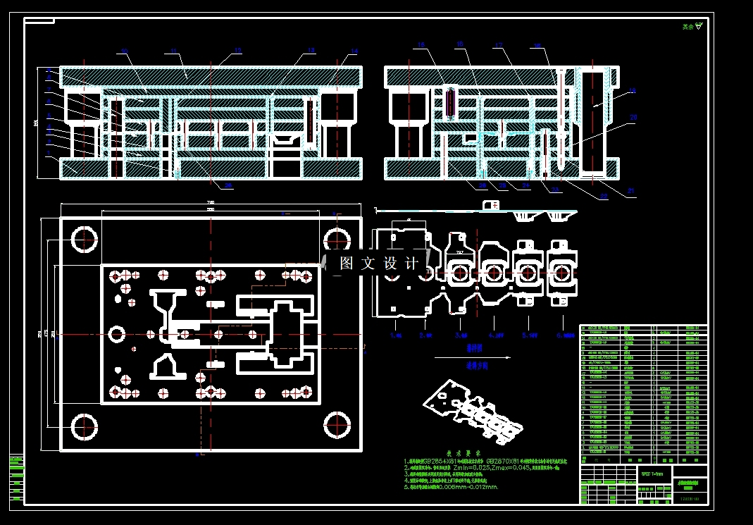 此设计为汽车水箱安装加强板工艺分析与模具设计,采用SPCC冷轧钢板作为原料,厚度为1mm,提供三维(UG格式)+二维装配图1张及主要零件图21张+设计报告文档( 文档约1.3W字 37页)。在对水箱安装加强板进行分析之后,确定用级进模进行生产,了解到该零件需求量较大,将其送料方式定为自动送料,这样设计可让生产的效率提高,减少操作者的工作量。设计中利用CAD与三维软件完成了水箱安装加强板零件图以及模具装配图的绘制,确定了设计的方向。接着分析了零件的构造,尺寸公差以及精度,在对经济性以及可行性进行了分析之后,将零件的冲压工艺步骤以及模具的构造确定下来。随后对模具中的重要零件进行了逐个分析与设计,在确定了相关参数之后,选取了生产所需的压力机。另外分析了模具设计以及工艺流程设计时,需要注意的事项,并对所选冲压机进行了验证。