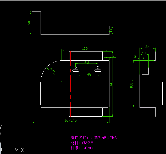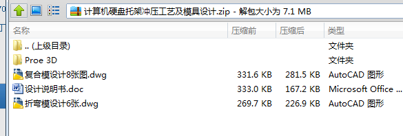 本文给出了计算机硬盘托架的结构,分析了计算机硬盘托架的成形工艺,并制定出有效的成形方案:模具设计。分析了所设计计算机硬盘托架的成型工艺特点,包括工件的工艺分析、工序排样、工艺计算。完成了模具的总体概要设计、模具零件详细设计、冲压设备的选择等工作。详细介绍了模具凸模、凹模、固定板、卸料装置、出件装置等零部件的设计方法。同时阐述了模具的工作过程以及凸模和凹模、凸模与卸料板间的装配间隙。