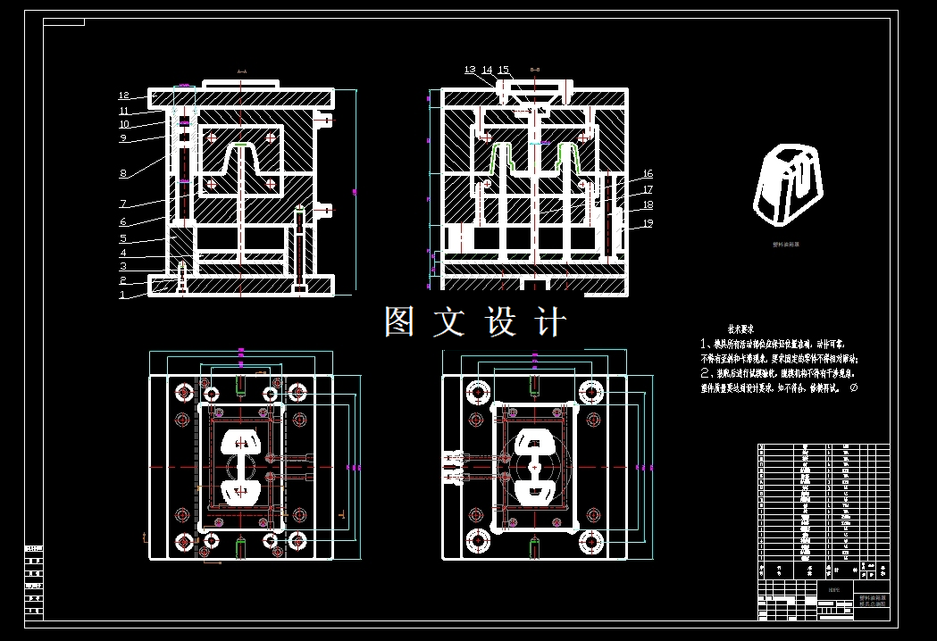 此设计为塑料油箱罩注塑模具设计,采用一模二腔,侧浇注口进行填充,提供三维(UG格式)+二维装配图1张及主要零件图9张+设计报告文档( 文档约1.3W字 37页)。通过三维绘图软件UG对本次设计的塑料油箱罩制品进行建模处理,通过建模,可以对本次设计的制品的结构形态进行全面的了解和分析。本次设计的制品的内部结构上相对来说在模具加工行业中算中等难度,因此加工的流程和设计的复杂程度来说同样不会太难,并且该制品的壁厚分布相对来说较为合理。通过对该制品的加工效率以及生产过程进行工艺分析,最终确定选用的加工方式为一模四腔的结构,选取潜浇口进胶的两板模具结构。在对本次模具设计之前,先根据塑料油箱罩产品的要求完成制品的加工材料选择,此后对模具的加工成型的时候的各项参数进行分析,确定各项加工条件,通过参数,可以确定注塑成型的机器,在对注塑成型机进行确定的时候,一般的方法是注塑机的所有参数都要符合模具参数,选择完成后还需要对注塑机的参数进行校核,确保其能符合加工要求。分析完成后,把该模具的各部分以及装配图通过CAD绘制成二维图,通过UG绘制出模具的三维图,从而完成本次模具的设计。
