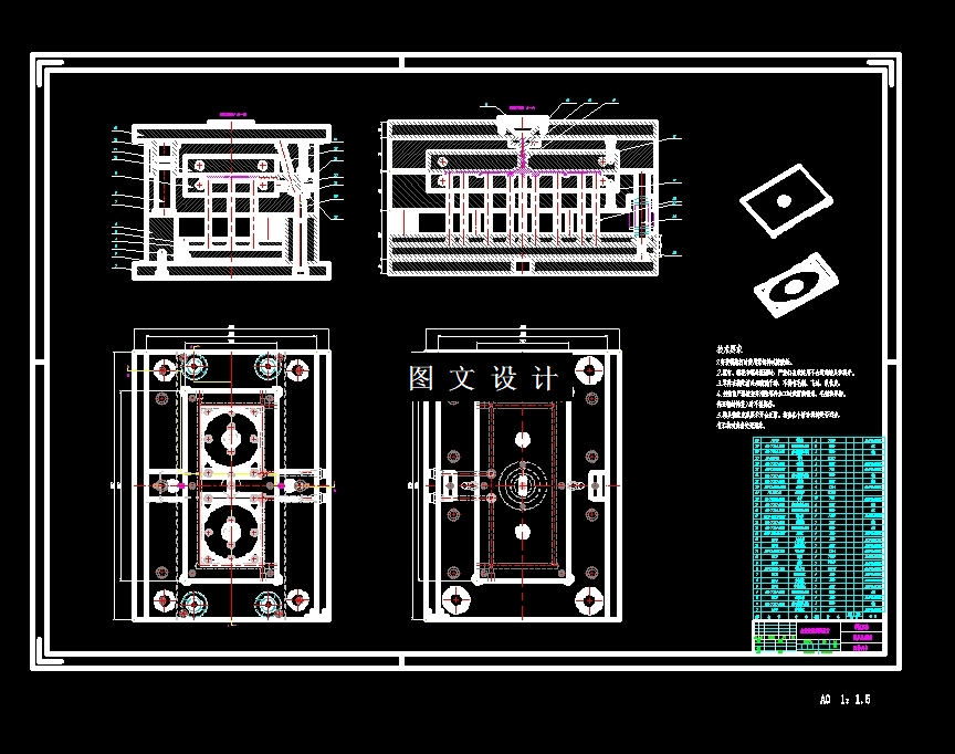 此设计为CD盒注塑模具设计,采用一模二腔,侧浇注口进行填充,提供三维(UG格式)+二维装配图1张及主要零件图14张+设计报告文档( 文档约1.4W字 45页)。第一步是要清楚地认识和了解该塑件的基本信息,比如它的用途、基本形状构造和所用塑胶的材料。第二步是要考虑该塑件的分型面,这是非常重要的一步,分型面影响到塑件的整套模具设计的脱模机构设计以及塑件的外观。第三步是确定型腔的数量和布局为一模二腔。第四步根据塑件的结构,判断塑件不需要进行侧抽芯。第五步是完成塑件的浇注系统,其中包括进胶口、流道、进胶系统相关配件等等。第六步是确定塑件的顶出系统,常见的顶出系统有推杆和推板。第七步是确定塑件的冷却系统,原则是要冷却均匀。第八步是要结合前面的数据选择合适的模架,原则是尽量选用龙记的标准的模架。