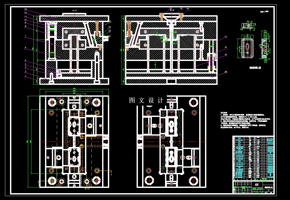 此设计为视频发射器上盖注塑模具设计,采用一模二腔,侧浇注口进行填充,提供三维(UG格式)+二维装配图1张及主要零件图18张+设计报告文档( 文档约2.0W字 51页)。为了更好的完成本次设计,需要做非常多的工作。第一步是要清楚地认识 和了解该塑件的基本信息,比如它的用途、基本形状构造和所用塑胶的材料。第二步是要考虑该塑件的分型面,这是非常重要的一步,分型面影响到塑件的整套模具设计的脱模机构设计以及塑件的外观。第三步是确定型腔的数量和布局。 第四步根据塑件的结构,判断塑件需不需要进行侧抽芯。第五步是完成塑件的浇注系统,其中包括进胶口、流道、进胶系统相关配件等等。第六步是确定塑件的顶出系统,常见的顶出系统有推杆和推板。第七步是确定塑件的冷却系统,原则是要冷却均匀。第八步是要结合前面的数据选择合适的模架