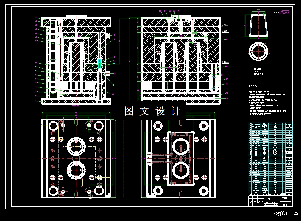 此设计为基于Moldflow分析的塑料杯注塑模具设计,采用一模二腔,点浇注口进行填充,提供三维(UG格式)+二维装配图1张及主要零件图12张+模流分析+设计报告文档( 文档约1.5W字 46页)。为了更好的完成本次设计,需要做非常多的工作。第一步是要清楚地认识和了解该塑件的基本信息,比如它的用途、基本形状构造和所用塑胶的材料。第二步是要考虑该塑件的分型面,这是非常重要的一步,分型面影响到塑件的整套模具设计的脱模机构设计以及塑件的外观。第三步是确定型腔的数量和布局。第四步根据塑件的结构,判断塑件需不需要进行侧抽芯。第五步是完成塑件的浇注系统,其中包括进胶口、流道、进胶系统相关配件等等。第六步是确定塑件的顶出系统,常见的顶出系统有推杆和推板。第七步是确定塑件的冷却系统,原则是要冷却均匀。第八步是要结合前面的数据选择合适的模架