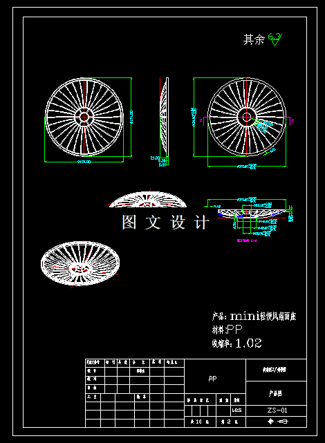 mini轻便风扇面座注塑模具设计 提供三维(三维有UG8.5格式+STP通用格式)+二维装配图及主要零件图,此次设计是对于mini轻便风扇面座进行模具设计,基于UG软件对塑件的三维建模,完成了对该塑件的结构分析,了解到该塑件外形结构较简单,中心上方有一个圆口,能在圆口上进胶。考虑模具尺寸与效益问题,我采用一模一腔结构,侧浇口进料的两板式模具。 通过对塑件材料的成型工艺的正确分析,所以选择了较理想的注塑机及对有关注塑机参数进行了校核。然后是塑模中的分型面的选择。对浇注系统的设计,确定了主流道,分流道,浇口及冷料穴等。然后是成型零件的设计及尺寸计算,我确定了型腔深度,型腔高度,型腔壁厚,型芯高度。然后是冷却系统的设计及计算,确定了是否需要冷却系统等,最后是对推出机构的设计,合模导向机构的设计以及对抽芯机构的设计等。一些重要的机构系统设计完成后,我会确定了模架。最终设计出了一模一 腔结构,侧浇口进料的两板式模具。