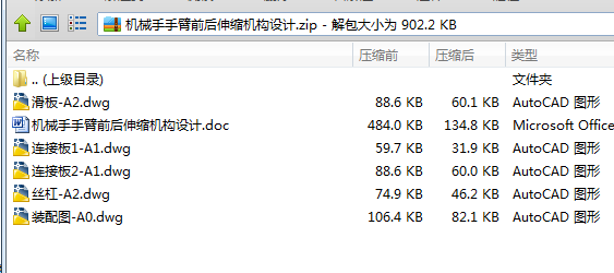 本文设计的机械手手臂前后伸缩机构由电动机、丝杠螺母副、导杆、手臂、连接板等构成。设计过程中,首先,调查了机械手研究现况,在此基础上根据设计技术要求选定了驱动机构及伸缩机构方案;接着,根据选定的结构方案对各主要零部件进行了设计与校核;最后,通过AutoCAD绘图软件绘制了该机械手手臂前后伸缩机构的装配图及主要零部件图。