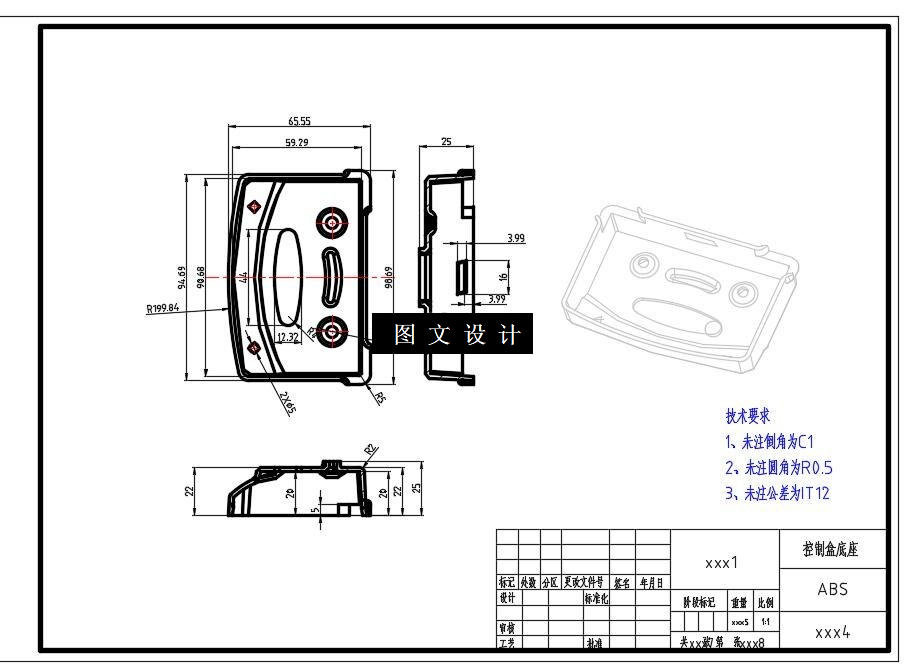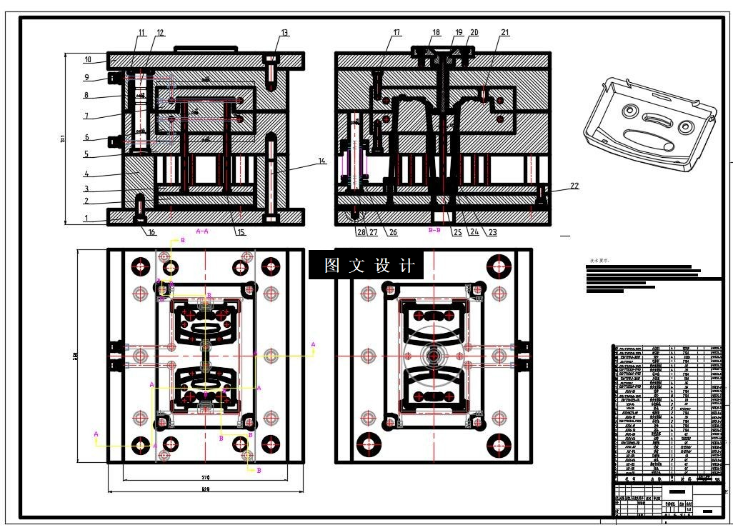 此说明书介绍了外壳支架注塑成型工艺分析及及模具设计。着重介绍了外壳支架的模具设计。该模具为两板式单分型面注塑模,由于模具的型芯型腔的结构尺寸不是很大,结构相对较为简单,型芯型腔结构采用组合式。外壳支架塑件采用的材料为ABS,ABS的使用性能好,强度高,尺寸稳定;成型工艺性能高,耐化学性、易成型。同时考虑到实际的生产需要,在保证成型塑件质量的前提下,尽量降低成本,因此模具采用一模2件,侧浇口进料,注射机选用卧式注射机,有合理的排气系统和冷却系统。在模具设计的过程中,采用了UG三维造型,AutoCAD绘制总装图及各成型零件图,并编制型芯,型腔等零件的机加工工艺。