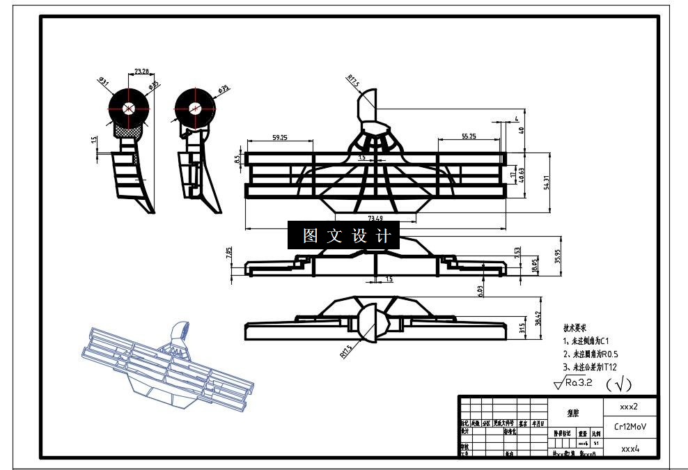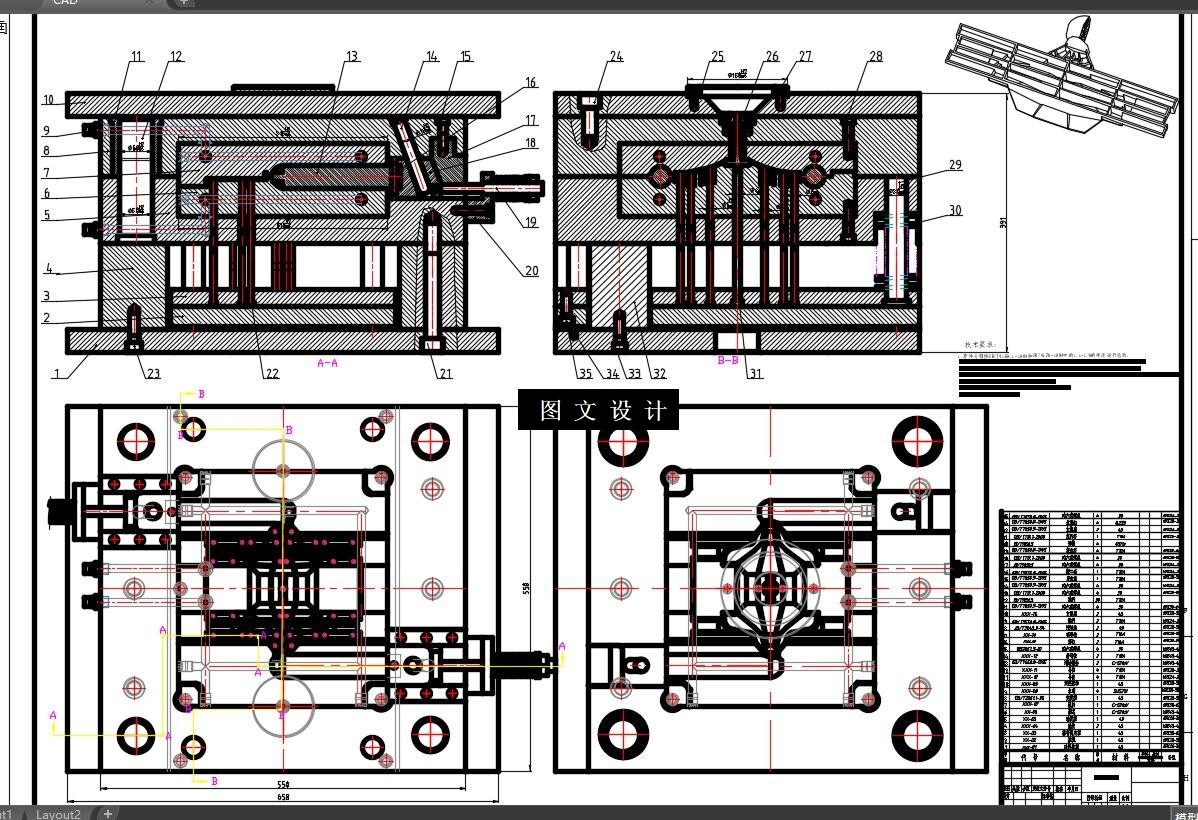 本设计采用CAD、UG软件,进行了塑料模具设计,根据注射模设计,分型面选择在大断面处,进行了浇注系统设计,成型后,塑件成型的产品放在注塑机上。设计需要计算塑件的尺寸,确定尺寸精度,然后注射机的选择。检查注塑机参数包括厚度,模具安装尺寸,模具闭模行程,注塑机锁模力等参数,所有符合要求在确定注射机的类型。在设计过程中,为了更清晰地表达模具的内部结构,所以有很多的模具结构和模具的局部图,并绘制二维图。