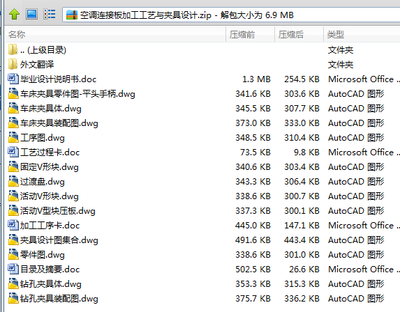 空调连接板零件零件加工工艺及夹具设计是包括零件加工的工艺设计、工序设计以及专用夹具的设计三部分。在工艺设计中要首先对零件进行分析,了解零件的工艺再设计出毛坯的结构,并选择好零件的加工基准,设计出零件的工艺路线;接着对零件各个工步的工序进行尺寸计算,关键是决定出各个工序的工艺装备及切削用量;然后进行专用夹具的设计,选择设计出夹具的各个组成部件,如定位元件、夹紧元件、引导元件、夹具体与机床的连接部件以及其它部件;计算出夹具定位时产生的定位误差,分析夹具结构的合理性与不足之处,并在以后设计中注意改进。