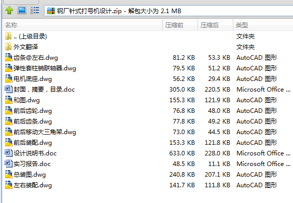 本次设计的内容及工作量是确定针式打号机的总体结构及其组成,完成主要机械部分设计。板钢厂打号机机构结构由左右移动装置、前后移动装置以及边部检测装置三部分组成。具体内容如下: 左右移动机构、前后移动机构机械传动部分的设计基本相同,包括:拟定总体传动方案,确定电动机型号和类型,初取传动比,分配传动比,确定减速器类型,进行减速器热校核和强度、刚度校核,选择连轴器的型号和规格,进行许用转矩校核,合理选择键,不同的是左右移动机构设计车轮传动,前后机构设计齿轮齿条传动几何尺寸设计,进行齿轮齿条传动的接触疲劳强度校核和疲劳强度验算。而边部检测装置和前后移动装置差不多都是齿轮齿条传动。这重阐述了:如何根据负载大小和特性及工作环境选择电动机,如何根据负载、传动比和结构来设计减速器,如何初定齿轮尺寸进行齿轮传动设计。钢厂针式打号机为广泛运用于钢铁行业中在钢材上的打号,是机电一体化产品。钢厂针式打号机设计是机械设计和单片机控制的有机结合。最大的特点是从机电有机结合的角度,运用机电一体化系统的设计原理与设计方法进行设计,正好符合机电专业的要求。