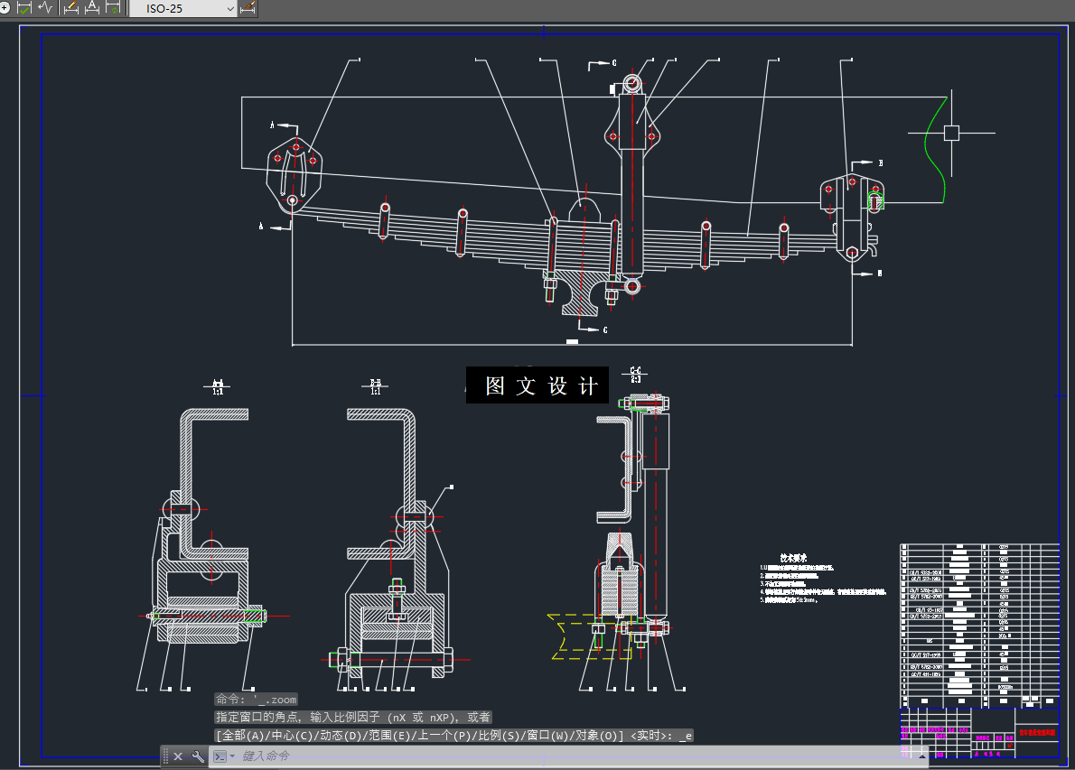 汽车悬架伴随着汽车的发展而逐渐的不断突破发展,形式多种各样,结构和功能也各不相同。但是他的主要作用确实不变的。悬架的主要作用就是用来传递汽车静止或者行驶过程中,在车轮和车身之间所产生的各种作用力、冲击力以及相应的力矩等,从而能够缓冲由路面路况以及车身所产生的冲击载荷、震动,确保了汽车行驶过程中驾乘人员的舒适性以及减小货物和车轮所产生的动载荷。 本次设计主要是针对货车的悬架系统进行设计。结构一般类似结构的货车,选择相应合适的悬架,并进行设计计算。在本次毕业设计中,首先明确了设计的目的和意义,然后对悬架以及所选择悬架的发展状况、结构等进行了详细的了解,然后根据给定的基本参数,对选择的前后悬架进行了设计计算,并对其受力进行了分析,对刚度和强度进行了校核,以确保所选择、设计参数能够满足使用要求。同时对悬架的减震器等也进行了计算选择。最后形成了设计说明书和CAD图纸资料。