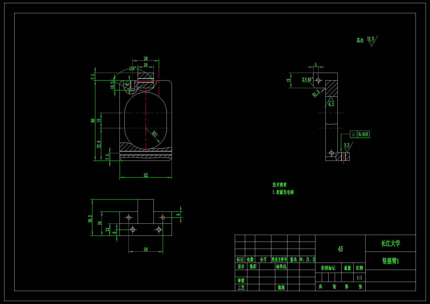 主要包括二维图,二维图包括一张装配图和八张零件图,为dwg格式,主要设计的是医疗服务的移动机器人底盘。论文研究的内容包括底盘运动学分析,首先了解了一下麦克纳姆轮的工作原理,以及对于其进行了运动学建模,研究其控制方案,然后对其车轮结构进行分析。并在运动控制方案中增加了避障功能。最后,为全方位移动机器人搭建稳定可靠的底盘。结构设计完成后,计算机器人底盘的主要参数,主要包括驱动单元和减震的设计,并且还对于主要参数进行了计算,包括对于机器人在不同工况下的驱动力分析计算,以及对于减震弹簧进行了计算,以及对于弹簧顶盖利用ANSYS关键进行了仿真,验证了弹簧顶盖的强度和刚度都可以满足使用要求。