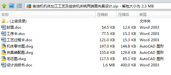 本设计说明书对柴油机机体进行了结构和工艺性能的分析,制定了柴油机机体的工艺规程,选定了相应的工艺基准、定位基准,并进行了定位分析、加紧力计算,指定工序铣两端面的夹具设计。而对于我的设计题目,主要的加工方式是铣削加工和钻削加工,又分为粗加工和精加工。
