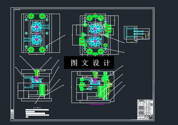 三维模型 二维图纸 本文选取风扇作为主要的研究对象,从其造型结构展开分析,根据注塑模具设计流程来完成整副模具的设计。首先在相关参数确定的基础上,对模具的各个组成系统展开设计与计算。本文首先确定了塑件成型的工艺参数,包括注塑机的选择以及成型参数的确定。其次从型腔的分布到浇注系统其中包括浇口及流道部分的设计,推出系统、斜顶机构等结构的设计,以及冷却系统水管的排布等方面逐步完成了整副模具的设计。