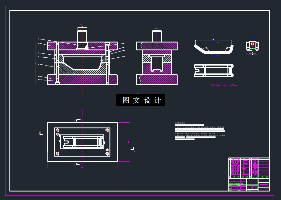 本论文研究的是支架冲压工艺及模具设计。结合支架零件,定制正确冲压工艺方案的过程,确定这个冲压计划,设计彼此照应的模具结构及模具制造工艺,设计分两道工序进行,一个是冲孔落料,另一个是弯曲模具的设计。分析零件工艺性如毛胚等,还有展开尺寸,通过计算剖析实现该模具的相关的设计计算;依照分析和计算抉择出符合该模具的定位形式、卸料和导向结构,确定排样图,计算利用率,还有选用压力机和模架等。再到成形加工,再到主要零件的加工工艺,装配工艺等。最后到总装配图的完成,最后再编制模具工艺设计,最终完成整个设计内容。