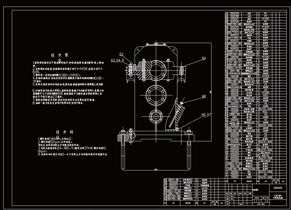 冷喂料挤出机设计图纸包含二维装配图、零件图等。冷喂料挤出机经历过三个阶段的发展,直到目前的销钉冷喂料橡胶挤出机,不仅使挤出性能得到了很大的提升,且由于具有塑化的性能好、排胶的温度低、挤出量大的特点,使其在橡胶工业生产中,取得了越来越广泛的应用。