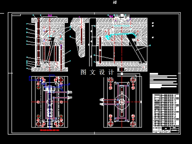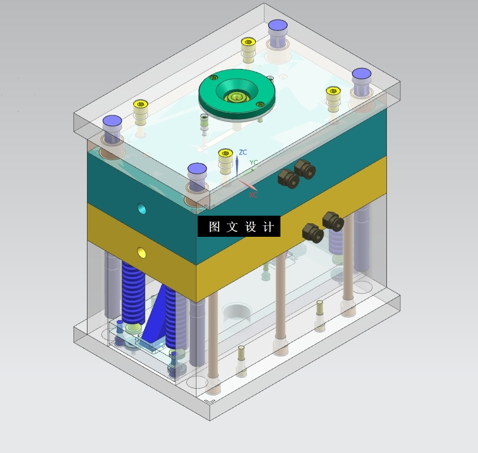 本次设计所研究的内容主要包括了模具的二维图CAD的设计、在根据产品实物,经过测量,通过三维绘图软件UG进行产品的绘制,再针对该产品进行模具的研究分析与设计。该过程主要包括了根据用途等原因进行产品材料的选择,考虑产品成型的缩水率,进行产品的分型面的设计和分析,确定型芯、型腔的尺寸、模穴的数量,确定侧抽芯机构的设计。由于分型所需,对产品进行去圆角,拔模等操作之后,开始设计绘制成型部件。同时完成推出系统、流道的设计。之后,再考虑排气系统、温度系统的的设计。然后通过成型零件的尺寸和分型的方式等确定模架的种类和尺寸的选择,绘制模架的过程可借助外挂加快绘制。