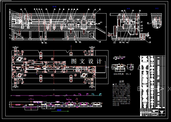 在进行冲压模具设计的时候,这次选定的具体是实现支架的一个零件,完成一个支架零件的多工位级进模具设计,在进行设计的时候,首先就是需要对所进行加工的产品有一个比较严谨的分析过程,分析的内容包括本身的工艺要求,相关的尺寸等等,还有就是完成分析之后,要考虑到在进行讲过的时候排样的问题,这部分考虑的内容包括有对于冲裁力的需求,还有对于冲裁零部件的相关计算等等,完成这些之后,就需要对整个图纸进行绘制,完成这些工作之后,还需要考虑到后续的安装的一些问题,确保整个模具在安装的时候,能够符合相关的要求,这些流程都完成之后,才算是整体完成了设计的过程。 分析之后,考虑到模具的要求就是需要确保加工的稳定性以及整体在使用时候的可靠性的内容,生产的时候是能够满足大批量生产的相关要求的,整个生产的效率得到了非常明显的提升,而且还具备有很好的经济性,这些都是设计模具的初衷,在这个过程完成后,自身对于模具相关知识的掌握更加的牢靠。1680009