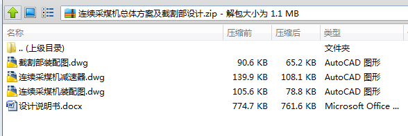 等的设计方法及强度校核公式。绘制了连续采煤机总装配图、截割部图和减速器图。用到了材料力学、理论力学、金属工艺学、CAXA绘图软件等。
