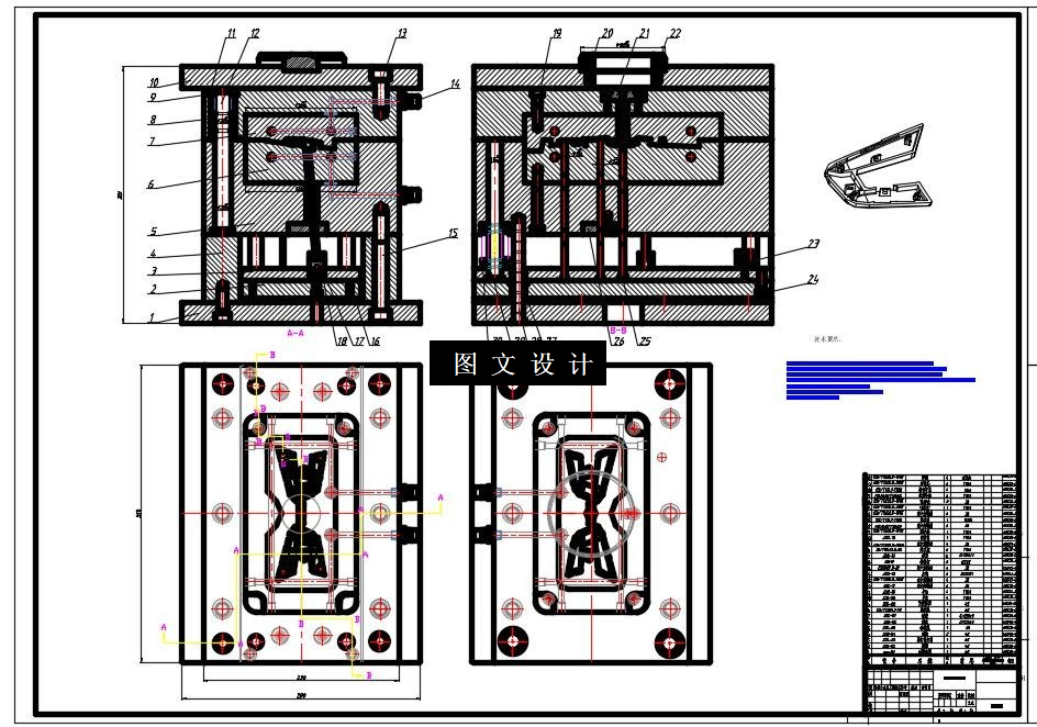 本文主要是设计汽车外壳件的注射模具,首先对塑件的材料、结构、表面质量进行分析,然后,论述了注射成型的基本原理,特别是单分型面注射模具的结构设计,详细介绍了注射模具的成型工艺及设备选择、浇注系统、抽芯机构和成型零部件的设计过程,并对模具制造工艺要求做了说明,最后通过CAD软件绘制出模具图。通过本设计,可以对注射模具有一个初步的认识,注意到设计中的细节问题,了解模具结构及工作原理,系统的复习了大学四年所学的专业知识。