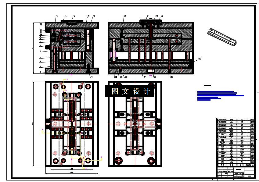 本设计采用CAD、UG软件,进行了塑料模具设计,根据注射模设计,分型面选择在大断面处,进行了浇注系统设计,成型后,塑件成型的产品放在注塑机上。设计需要计算塑件的尺寸,确定尺寸精度,然后注射机的选择。检查注塑机参数包括厚度,模具安装尺寸,模具闭模行程,注塑机锁模力等参数,所有符合要求在确定注射机的类型。在设计过程中,为了更清晰地表达模具的内部结构,所以有很多的模具结构和模具的局部图,并绘制二维图。
