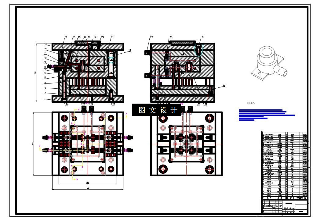 本文详细介绍了模具的浇注系统、模具成型部分结构、顶出系统、冷却系统、注塑机的选择及有关参数的校核等等设计。运用CAD、辅助工程UG等不同的软件分别对模具的设计、制造和产品质量进行分析。连接器壳体塑料注塑模具设计,采用一般精度,利用CAD、UG来设计或分析注射模的成型零部件,浇注系统,导向部件和脱模机构等等。针对下嘴座的具体结构,该模具采用侧浇口单分型面注射模具。由于塑件侧面有小孔,需要设置斜导柱。通过模具设计表明该模具能达到下嘴座的质量和加工工艺要求。综合运用了专业基础、专业课知识设计,其核心知识是塑料成型模具、材料成型技术基础、机械设计、塑料成型工艺、模具CAD\CAM等。