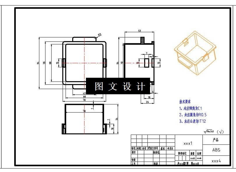 本设计采用CAD、UG软件,进行了塑料模具设计,根据注射模设计,分型面选择在大断面处,进行了浇注系统设计,成型后,塑件成型的产品放在注塑机上。设计需要计算塑件的尺寸,确定尺寸精度,然后注射机的选择。检查注塑机参数包括厚度,模具安装尺寸,模具闭模行程,注塑机锁模力等参数,所有符合要求在确定注射机的类型。在设计过程中,为了更清晰地表达模具的内部结构,所以有很多的模具结构和模具的局部图,并绘制二维图。