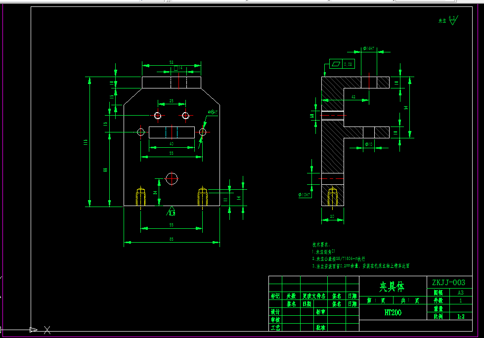 此次毕业设计的课题名称是导块的加工工艺设计,在此次的实际过程中主要是对零件的加工工艺进行设计,在设计中全方位的分析零件的各个加工要素,综合比较分析零件的不同的加工方案,最终为零件确定一种最优化的加工方案,然后对零件的各个加工参数进行计算,填写零件加工工艺表格,在完成零件的加工工艺以后,对零件的钻孔夹具进行设计,提高零件的生产加工效率,此次设计综合运用了我们所学的全部专业知识及也为走出校门以后参加过工作奠定基础,所以此次设计的意义是重大的,对设计中存在一些问题及不足请老师指出斧正。