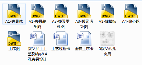此次设计是对拨叉零件的加工工艺和夹具设计,其零件为铸件,具有体积小,零件复杂的特点,由于面比孔易加工,在制定工艺规程时,就先加工面,再以面为基准来加工其它,其中各工序夹具都采用专用夹具以操作简单的手动夹紧方式夹紧,其机构设计简单,方便且能满足要求。