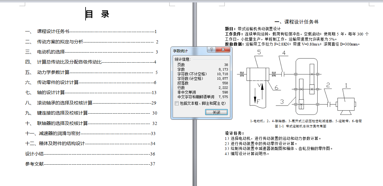 D053-带式运输机传动装置设计展开式二级圆柱齿轮减速器-F=2.8KN,V=0.80ms,D=300mm 下载积分:50 资料编号: D053