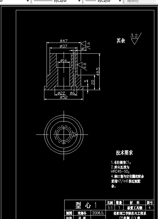 同时,在设计过程中,通过查阅大量资料、手册、标准、期刊等,结合教材上的知识也对注塑模具的组成结构(成型零部件、浇注系统、导向部分、推出机构、排气系统、模温调节系统)有了系统的认识,拓宽了视野,丰富了知识,为将来独立完成模具设计积累了一定的经验。