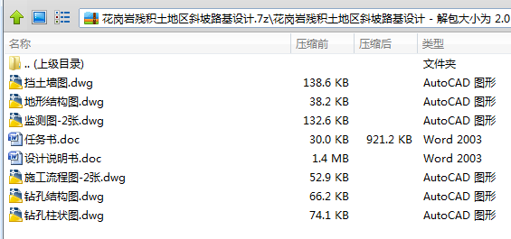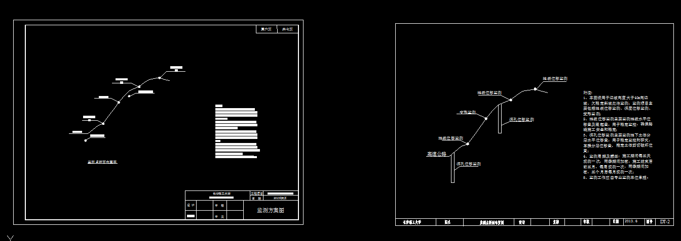 本设计为花岗岩残积土地区斜坡路基设计与施工。本文选取广东云浮至罗定高速公路K54+500~K54+970段典型剖面进行斜坡路基设计与分析。内容包括运用理正岩土软件进行地基处理验算与边坡稳定性分析,采用桩基托梁挡土墙创新性的边坡加固方式对路堤边坡进行防护,通过例举边坡坡面防护方式及其适用条件,最终选用喷射混凝土作为边坡坡面防护方案,并结合边坡防排水原则,对边坡进行了防排水设计,专题论述了全风化花岗岩边坡的稳定性问题。