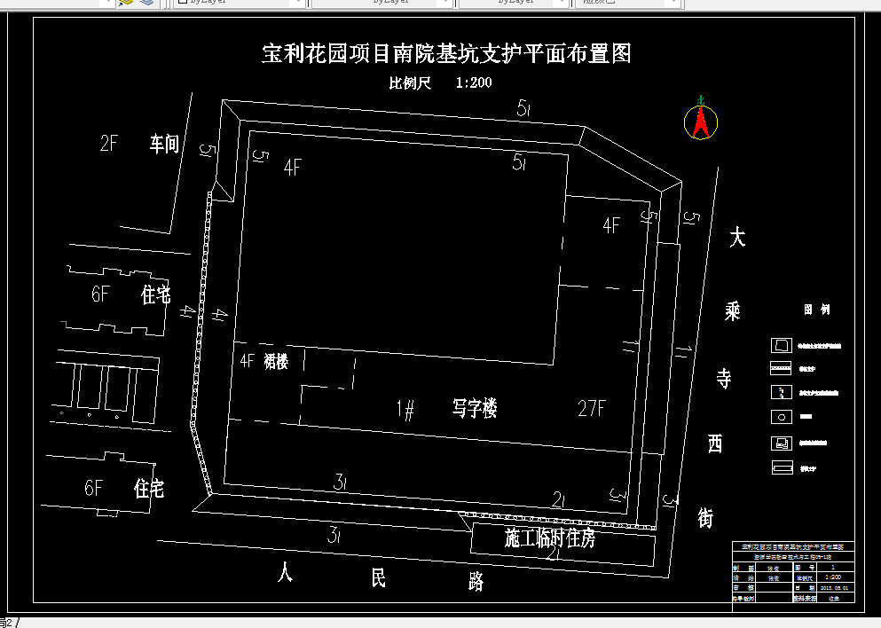 拟建工程由1#高层写字楼及裙楼、4#办公楼及地下车库组成。规划用地20939m²,南院基坑开挖深度7.7m~8.8m,北院基坑开挖深度5.6m~8.8m。本设计是针对南院基坑进行支护设计。