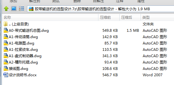 本次毕业设计是关于普通型胶带输送机选型的设计。首先对胶带输送机作了简单的介绍;接着分析了胶带输送机的选型原则及计算公式;然后按照这些设计准则设计了符合本次设计要求的胶带输送机;接着对所选择的输送机各主要零部件进行了校核。最后对胶带输送机的运行监控系统进行选择,并详细介绍了胶带监控系统的构成和应具有的功能,输送机在控制下实现的各种运行模式,分析了胶带输送机常见故障类型、故障检测传感器选型等。最后简单的说明了输送机的安装与维护。