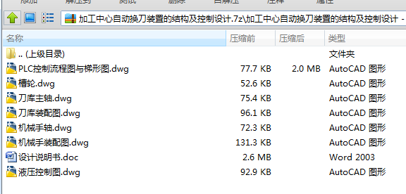本设计是开发设计出一种体积小、结构紧凑、价格较低、生产周期短的小型立式加工中心刀库。首先介绍了国内外加工中心研究现状及发展趋势,阐明了本课题研究的目的、意义。然后进一步介绍本加工中心刀库总体结构和各部件方案的选择,并在此基础上进行了加工中心刀库的机械结构和控制部分的设计计算,主要包括刀库转动定位机构设计、刀库总体机构设计、机械手部分设计以及液压、PLC的控制设计。