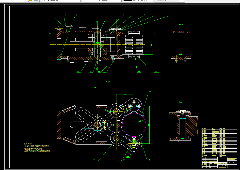 重点针对机械手的腰座、手臂、手抓等各部分机械结构以及机械手控制系统进行了详细的设计。具体进行了机械手的总体设计,腰座结构的设计,机械手手臂结构的设计并对其进行分析计算,机械手腕部的结构设计,末端执行器(手抓)的结构设计并对其进行分析计算,机械手驱动系统的设计。同时对液压系统和控制系统进行了理论分析和计算。基于PLC对机械手的控制系统进行了设计,通过对机械手作业的工艺过程和控制要求的分析,对控制系统进程序设计,同时编写PLC控制程序及梯形图等,设计达到了设计的预期目标。