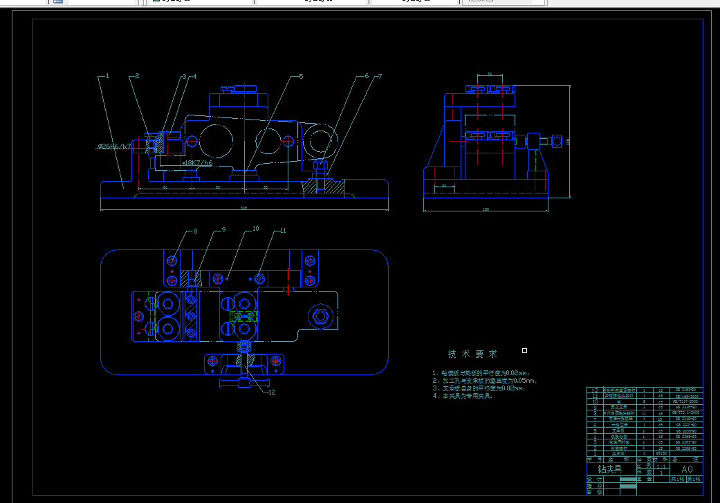 (2)、设计主视图中的三孔的加工夹具;