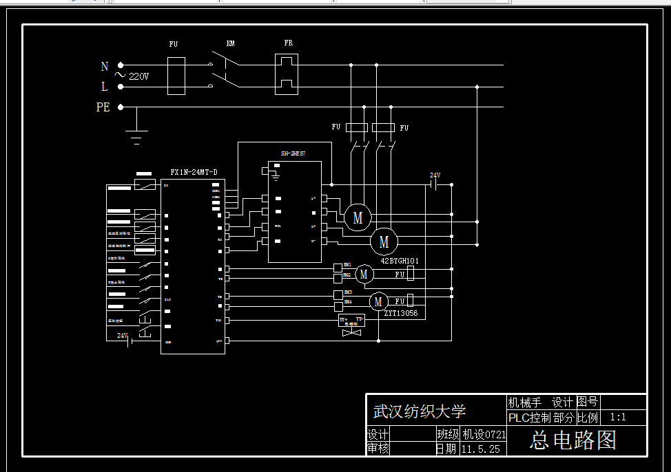 机械手是工业机器人系统中传统的任务执行机构,是机器人的关键部件之一。机械手的机械结构采用滚珠丝杆、滑杆、等机械器件组成;电气方面有交流电机、变频器、传感器、等电子器件组成。该装置涵盖了可编程控制技术,位置控制技术、检测技术等,是机电一体化的典型代表仪器之一。本文介绍的机械手是由PLC输出三路脉冲,分别驱动横轴、竖轴变频器,控制机械手横轴和竖轴的精确定位,微动开关将位置信号传给PLC主机;位置信号由接近开关反馈给PLC主机,通过交流电机的正反转来控制机械手手爪的张合,从而实现机械手精确运动的功能。本课题拟开发的物料搬运机械手可在空间抓放物体,动作灵活多样,可代替人工在高温和危险的作业区进行作业,并可根据工件的变化及运动流程的要求随时更改相关参数。