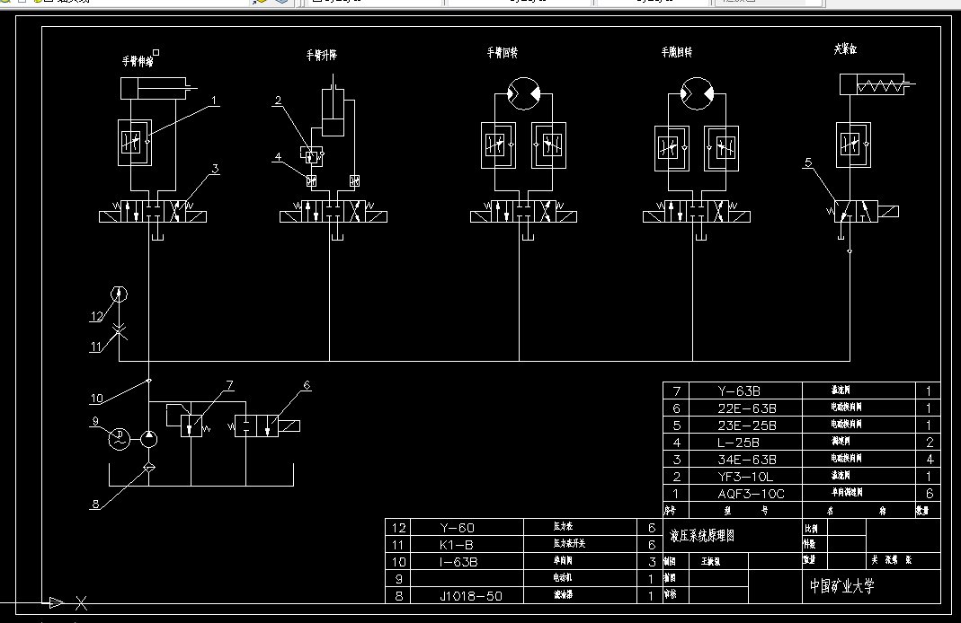 同时,本文设计出了机械手的液动系统,选择了适用的液压元件,绘制了机械手液压系统工作原理图。