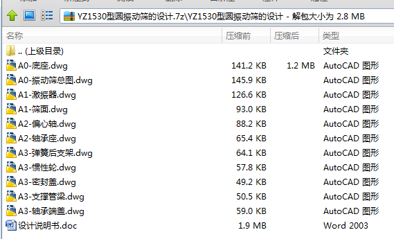 目前我国各种选煤厂使用的设备中,振动筛(筛分机)是问题较多、维修量较大的设备之一。这些问题突出表现在筛箱断梁、裂帮、稀油润滑的箱式振动器漏油、齿轮打齿、轴承温升过高、噪声过大等问题,同时伴有传动带跳带、断带等故障。这类问题直接影响了振动筛(筛分机)的使用寿命,严重影响了生产。YZ1530型圆振动筛可以很好的解决此类问题,因此本次设计的振动筛为YZ1530型圆振动筛,该系列振动筛主要用于煤炭行业中物料分级、脱水、脱泥、脱介等作业。其工作可靠,筛分效率高,但设备自身较重。设计分析论述了设计方案,包括振动筛的分类与特点和设计方案的确定;对物料的运动分析;对振动筛的动力学分析及动力学参数的计算;合理设计振动筛的结构尺寸;进行了激振器的偏心块等设计与计算,包括原始的设计参数,电动机的设计与校核;进行了主要零部件的设计与计算,弹簧的设计计算,轴的强度计算,轴承的选择与计算,然后进行了设备维修、安装、润滑及密封的设计,最后进行了振动筛的环保以及经济分析。