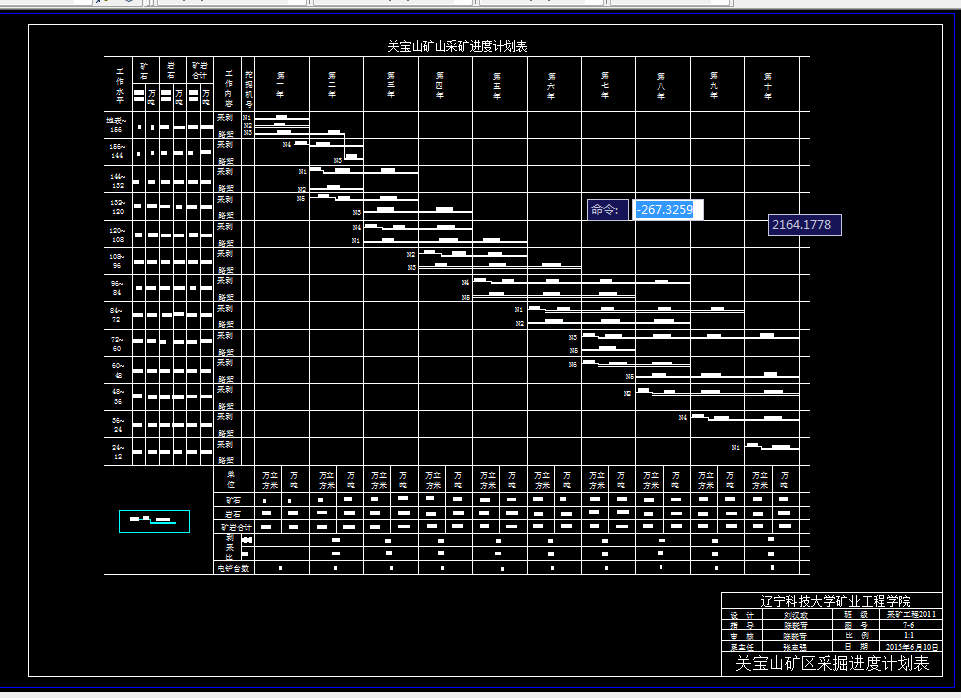本次关宝山铁矿的设计是根据矿山地质条件和具体的地形,结合1~8勘探线及各水平剖面的矿体赋存情况,再参照矿山的具体要求进行设计的,本次设计由矿山的具体情况确定为露天开采。设计中介绍了矿山矿岩属性及分布、水文地质条件、矿区的位置及交通。在设计说明书中阐述了境界圈定的方法及具体参数的确定,矿山开拓运输系统的选择,矿山工作制度的确定,矿山生产能力的确定。设计确定穿孔设备、采装设备、运输设备及爆破量。计算矿山的基建量,绘制出矿山基建图,根据每年的产量绘制出10年的开拓系统和运输系统布置图。根据每年的矿岩产量和生产剥采比最后编制进度计划表。
