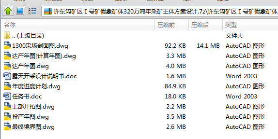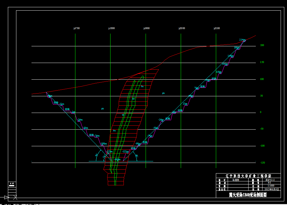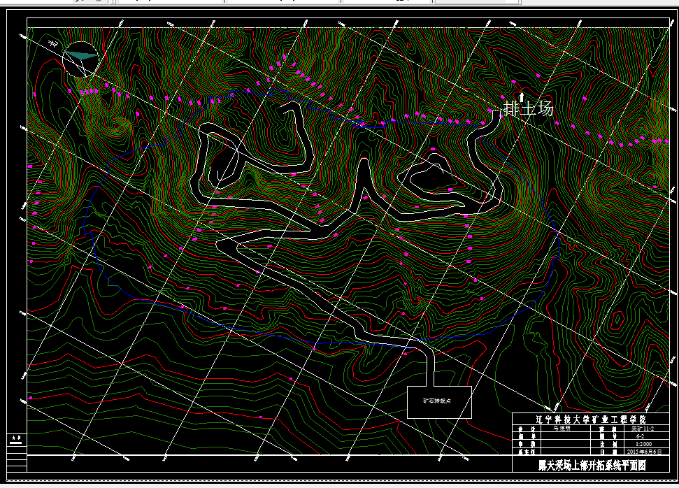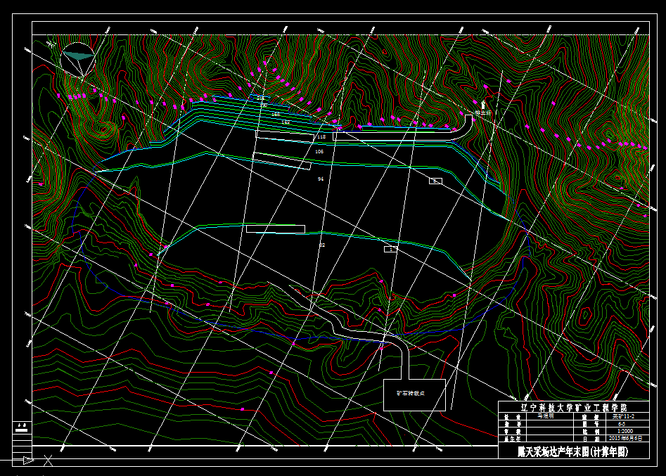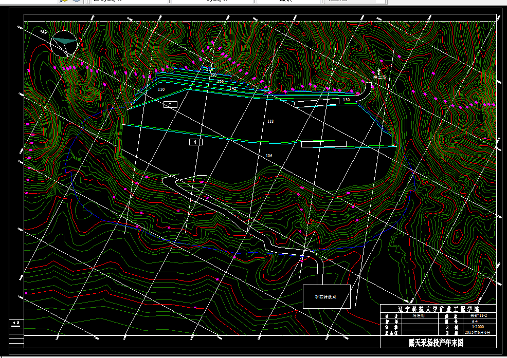 The graduate design is mining design of xu dong gou open-pit mine.The design topic is xu dong gou mining area mine illusion ore body plan of annual output of 3.2 million tons. The average body length of 4263m, width 142~293m, average 199m. To about 145 ~ 165, the tendency to north east, dip Angle is larger than 80, nearly vertical. In a maximum elevation of 214m, the exploitation of the depth of the minimum -146m, the minimum width 33m. In terms of design, including mine (ore reserves of: 197.49 million tons, ore reserves: 65.53 million tons, rock volume: 131.96 million tons, with an average stripping ratio is: 2.01), the open realm of delineation, mining options, capacity to identify develop systems (fixed pit lane to open up the system), equipment selection (YZ-55 rotary drill 3, WK-400 Model of 4 m3 Tracked Excavator 6 domestic SF-3100 Mine Dump Truck 11), extraction the progress of programming (in next year, is expected to end production in third year , as calculated in third year). The mine life is 19 year.The design include the following:boundary demarcation、ore reserves calculation、layout of transportation system、equipment selection、the decontamination of mining para metes、checking of the production capacity、mining plan、mine safety knowledge and environment protection. The principle of boundary demarcation is that boundary stripping ratio is less than or equal to the economic stripping ratio .