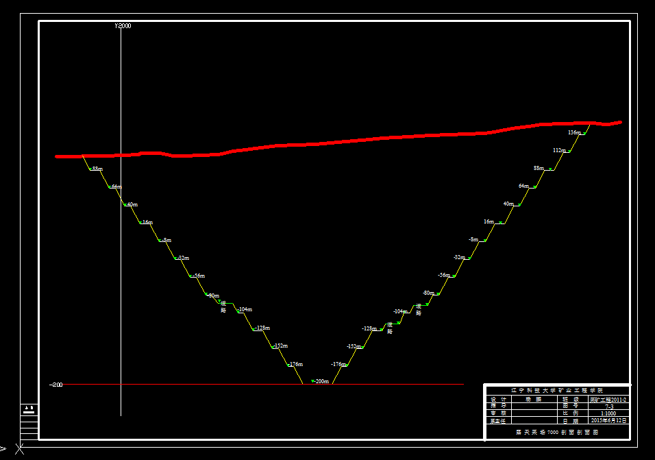 本设计是许东沟露天矿的开采设计,设计题目为许东沟矿区I号矿假象矿体年产量350万吨主体方案设计,矿山服务年限为53年,矿体平均长度为1800m,宽660m,最高标高232m,最低开采深度-200m,最小底宽34m。本次设计的目的在于巩固我们金属矿床露天开采的专业知识并与实际矿山相结合,达到理论结合实际,提高我们对专业知识的实际应用能力。本设计包括境界圈定、矿石储量计算、运输系统布置、设备选型、开采参数的确定、生产能力的验算、采掘进度计划编制、矿山安全知识和环境保护等。境界圈定的原则是境界剥采比小于等于经济合理剥采比。该设计还对排土场和转载平台进行了简单设计,转载平台位于+40m水平,排土场位于采场的东北方向上。根据矿山的实际情况,矿坑内汽车运输,采用移动坑线开采,矿坑外铁路运输。所选取的自卸汽车的型号为瓦勃柯120C,额定载重为108.86t;挖掘机型号为WK-10A,斗容为10m³;牙轮钻机型号为YZ-55,钻孔直径为310mm。