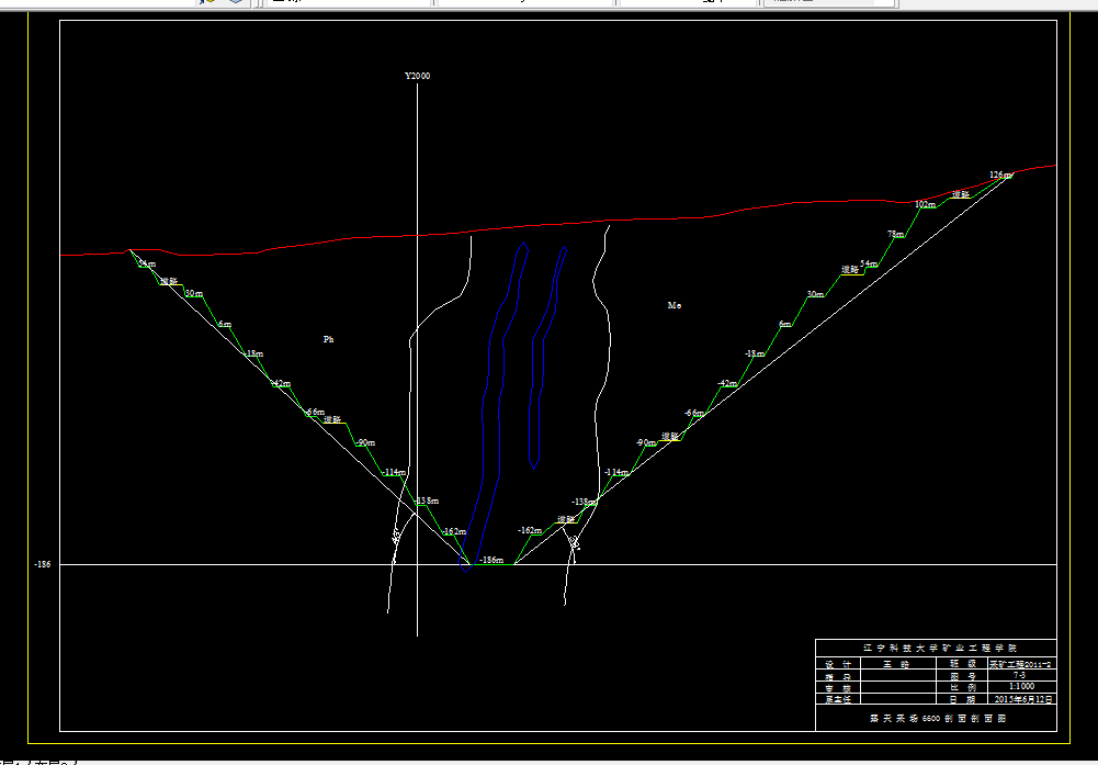 本设计是许东沟露天矿的开采设计,设计题目为许东沟矿区I号矿假象矿体年产量400万吨主体方案设计,矿山服务年限为40年。本次设计的目的在于巩固我们金属矿床露天开采的专业知识并与实际矿山相结合,达到理论结合实际,提高我们对专业知识的实际应用能力。本设计包括境界圈定、矿石储量计算、运输系统布置、设备选型、开采参数的确定、生产能力的验算、采掘进度计划编制、矿山安全知识和环境保护等。境界圈定的原则是境界剥采比小于等于经济合理剥采比。矿体平均长度1800m,宽为660m,最高标高为+246m,最低开采深度为-186m,最小底宽为31m。该设计还对排土场和转载平台进行了简单设计,转载平台位于+54m水平,排土场位于采场的西北方向上。根据矿山的实际情况,矿坑内汽车运输,采用移动坑线开采,矿坑外铁路运输。所选取的自卸汽车的型号为SF3100,额定载重为100t;挖掘机型号为WK-10A,斗容为10m³;牙轮钻机型号为YZ-55。