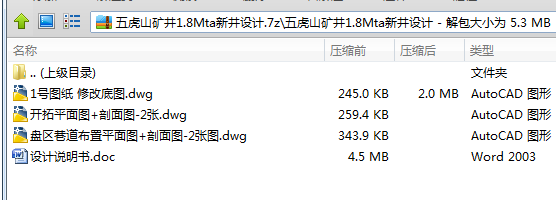 本设计为五虎山矿井1.8Mt/a新井设计。全篇共分7章内容分别是:矿井概述及井田地质特征、矿井储量生产能力及服务年限、井田开拓、采煤方法、矿井通风与安全、井下运输矿井提升与运输、和矿井主要经济技术指标。