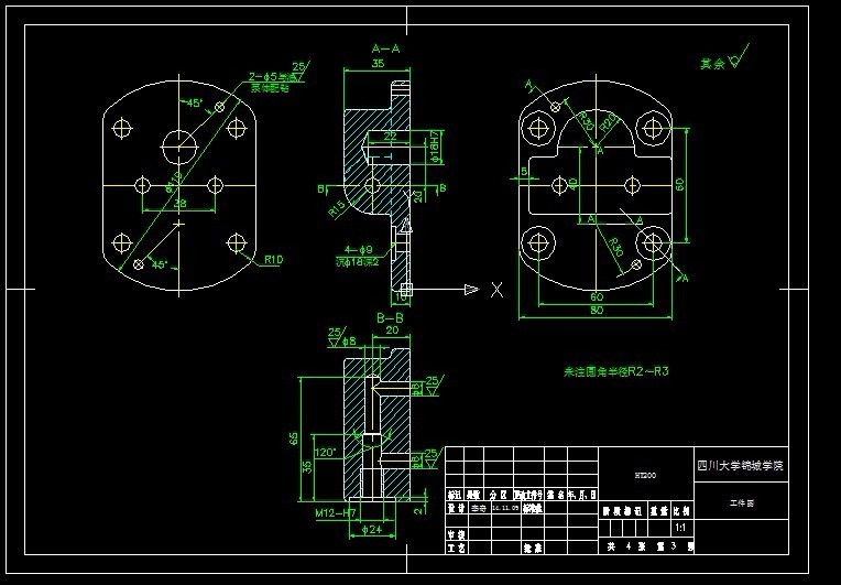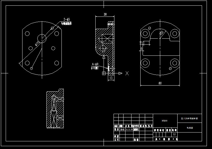 泵盖加工工艺规程及其钻扩铰Ф18H7孔的夹具设计是包括零件加工的工艺设计、工序设计以及专用夹具的设计三部分。在工艺设计中要首先对零件进行分析,了解零件的工艺再设计出毛坯的结构,并选择好零件的加工基准,设计出零件的工艺路线;接着对零件各个工步的工序进行尺寸计算,关键是决定出各个工序的工艺装备及切削用量;然后进行专用夹具的设计,选择设计出夹具的各个组成部件,如定位元件、夹紧元件、引导元件、夹具体与机床的连接部件以及其它部件;计算出夹具定位时产生的定位误差,分析夹具结构的合理性与不足之处,并在以后设计中注意改进。