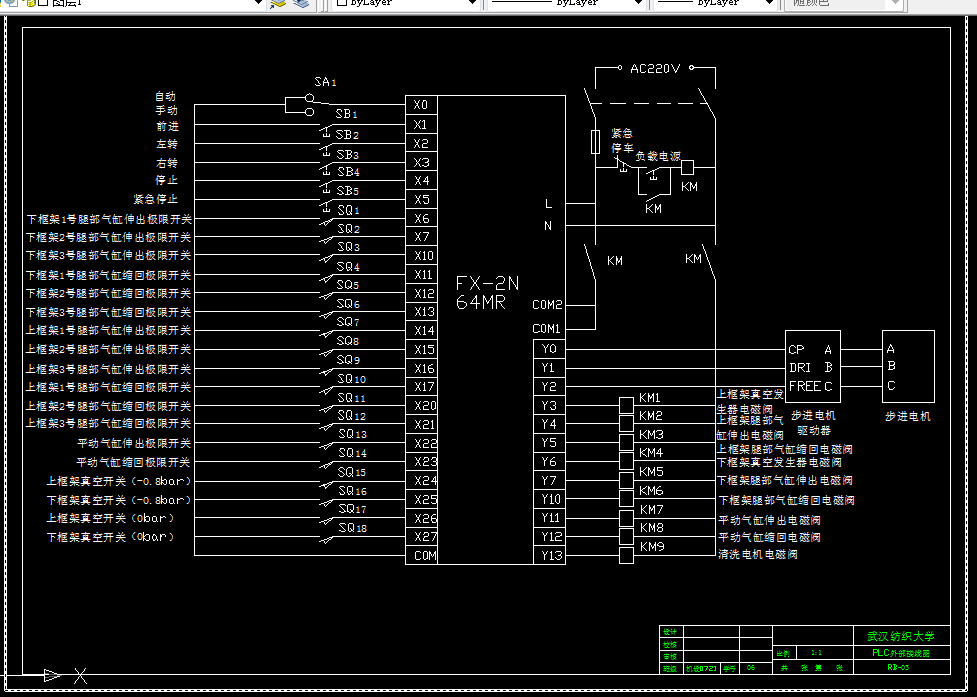 本文首先对壁面清洗机器人这个课题的来源、目的及意义进行了阐述,简单介绍了国内外壁面清洗机器人的发展情况,对壁面清洗机器人的几种不同的移动方式及吸附方式进行了比较,最后采用了多吸盘的框架式结构,具有结构简单、操作方便等优点。接着对壁面清洗机器人的总体方案进行了设计,设计了行走机构以及转向机构,通过平动气缸与腿部气缸来实现机器人的移动,并且通过对壁面吸附可靠性的分析选择了吸盘、吸盘支座及快拧接头等部件,还对其它的气动元件进行了选型,并且绘制了气压系统图。最后对壁面清洗机器人的控制系统进行了设计,采用了三菱的FX系列可编程控制器进行控制,并对可编程控制器的结构特点及工作原理进行了简单的介绍,然后分析了本设计中壁面清洗机器人的工作过程,对可编程控制器的输入输出端口进行了分配,并且编写了程序的梯形图。