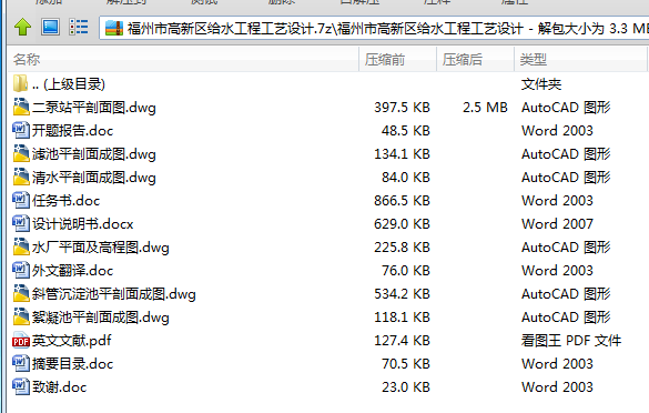 本设计为福州市高新区给水工程工艺设计,工程设计规模为80000m3/d。